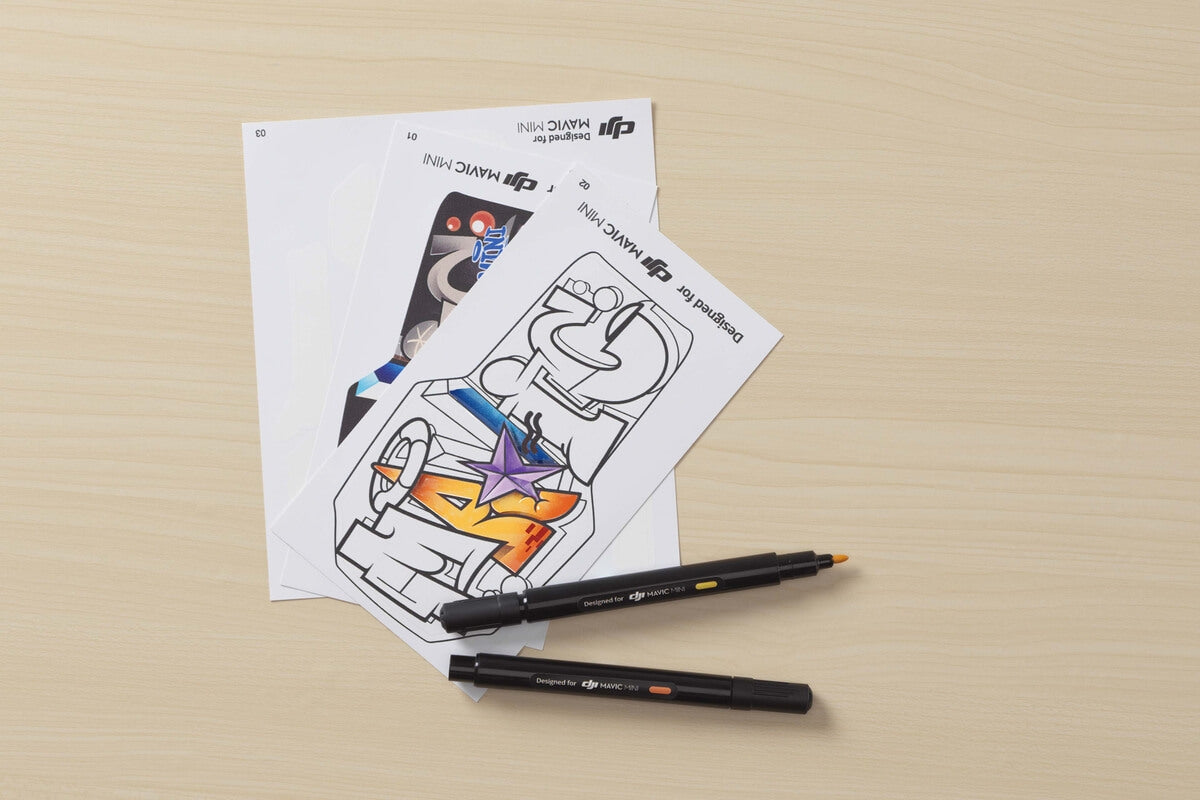 Includes blank shell stickers and colorful markers that allow users to personalize their Mavic Mini.